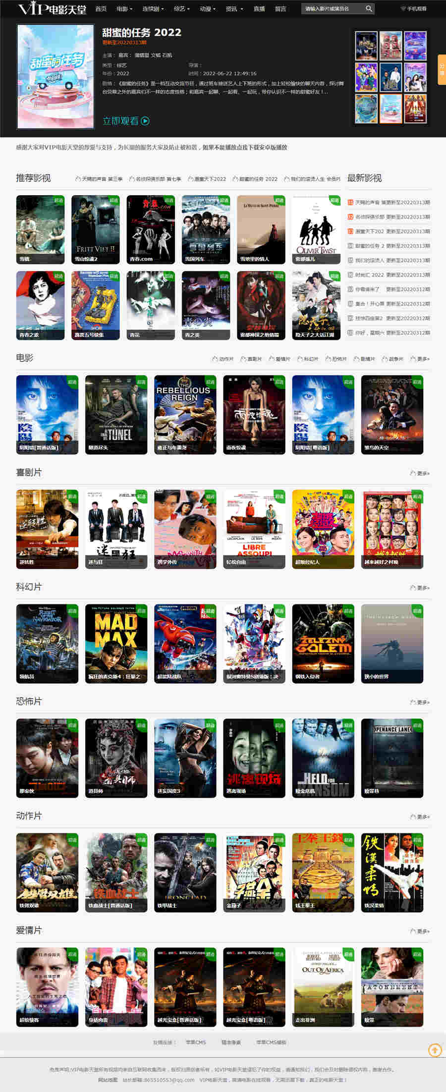 仿VIP电影天堂影视网站苹果CMSV8自适应模板