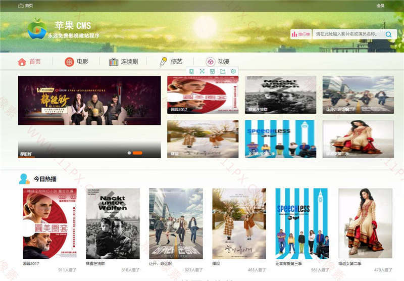 | 模板安装教程: 1、下载附件文件,解压到苹果CMS根模板 2、登陆苹果cms后台-系统管理-当前使用模板-替换新模板v10014 3、点击数据缓存更新,内存数据更新,文件缓存更新。 模板截图: |
