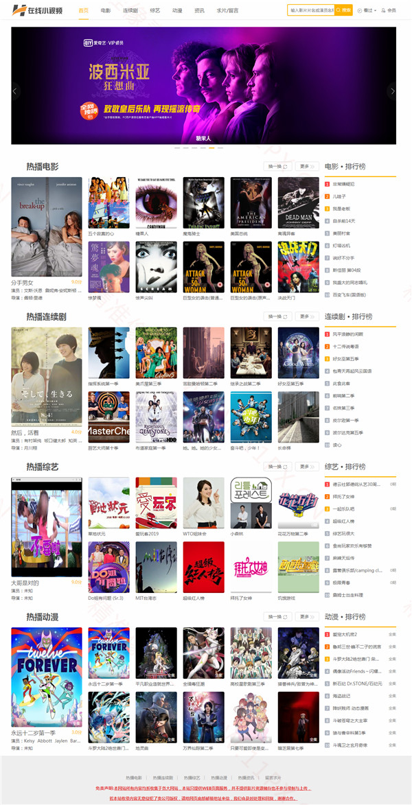 在线小视频苹果CMS模板,模板基于苹果CMS v10版本开发,UTF-8编码,自适应手机端。