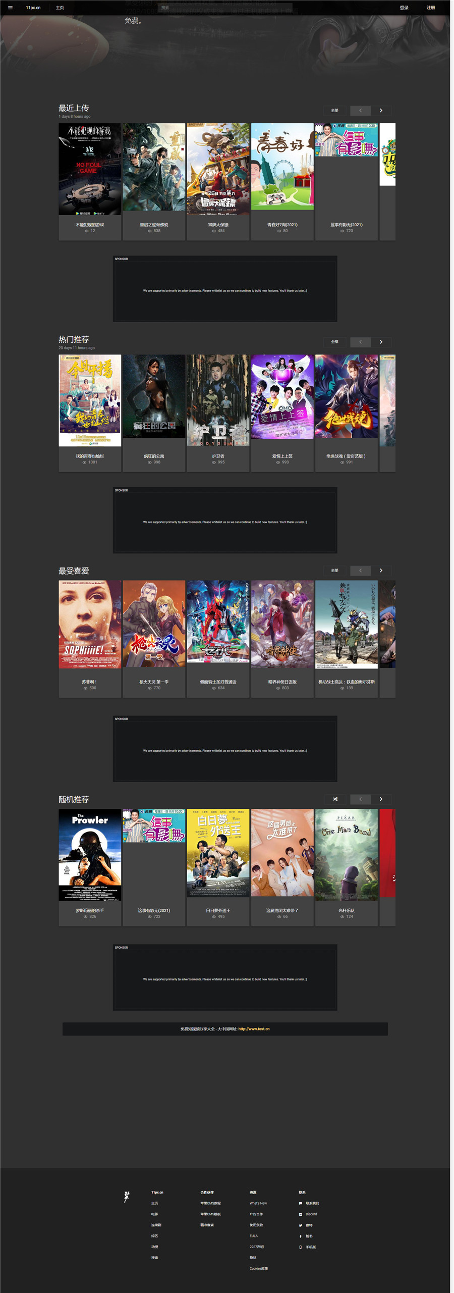 苹果cms卡通动漫主题模板,苹果CMSV10模板,自适应手机端,但自适应效果测试不是非常好,凑合用。