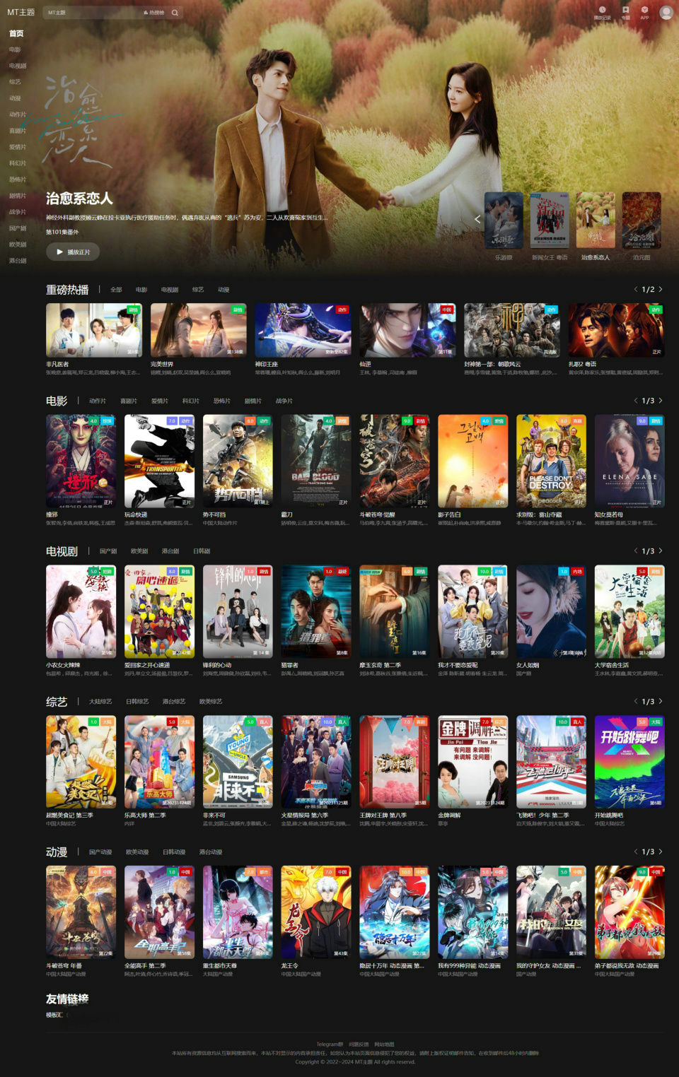 苹果cms MT主题是一款多功能苹果cmsV10暗黑大气主题