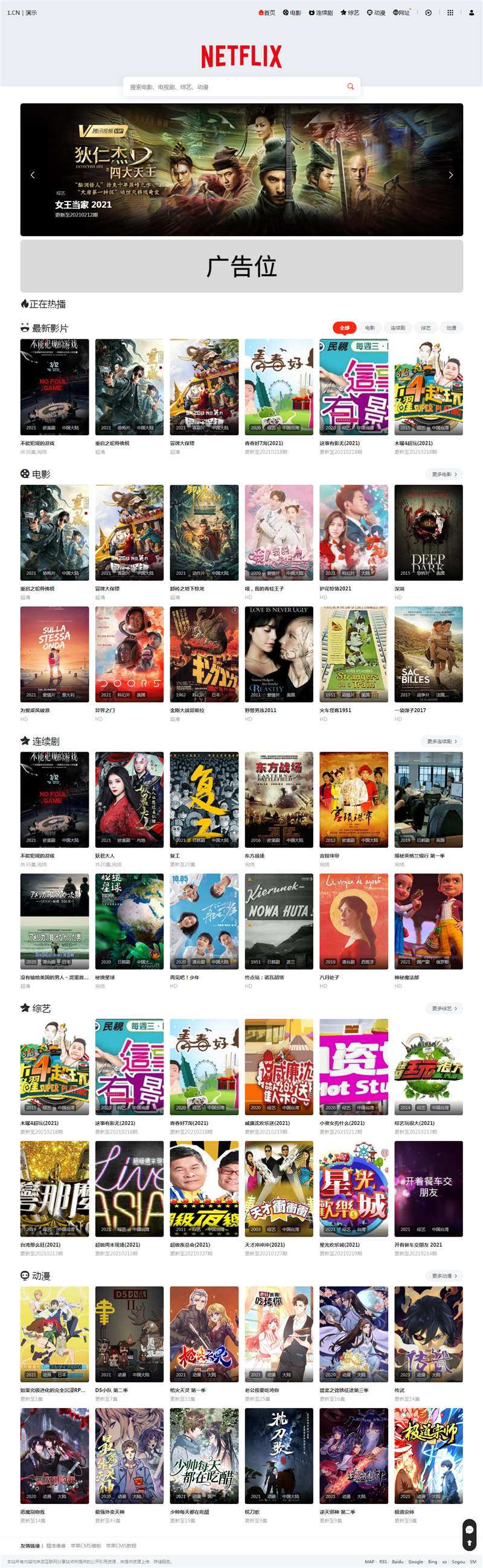 2.新增留言/资讯/专题/会员中心/用户注册/影片收藏等模块