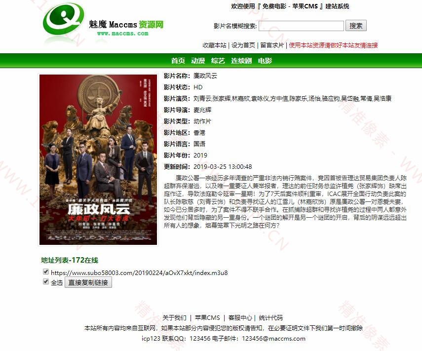 2.登陆苹果cms后台-系统管理-当前使用模板-替换新模板v10011