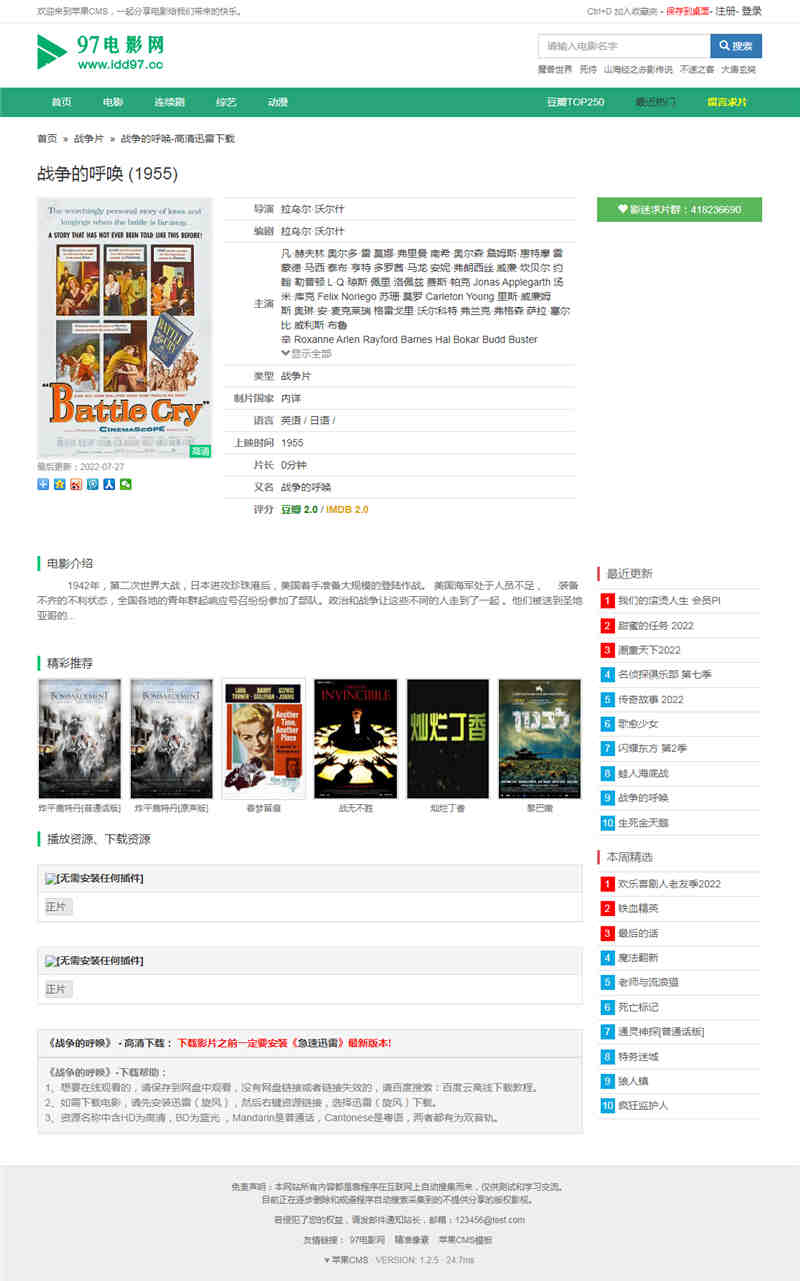 仿迅影网苹果CMS8X模板,仿迅影网主题风格,苹果cmsV8版本,电脑端,绿色风格,已测试,完美无错。