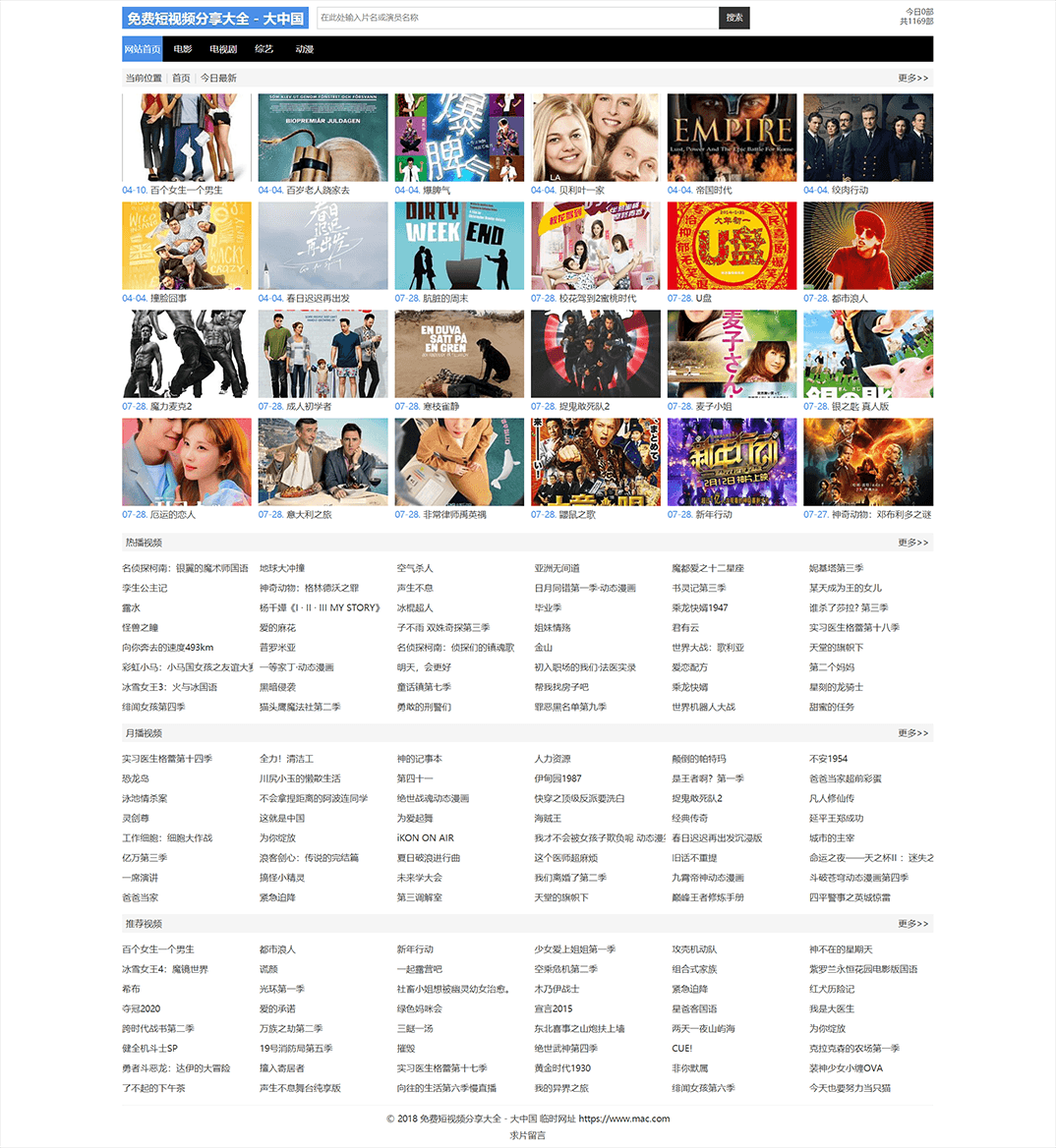 简约PC手机自适应小视频在线播放苹果CMS V10主题模板